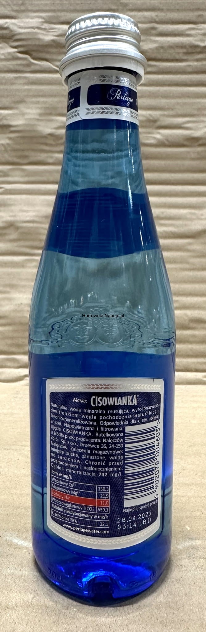 Naturalna woda mineralna Cisowianka, tradycyjnie gazowana, o średnim poziomie mineralizacji.