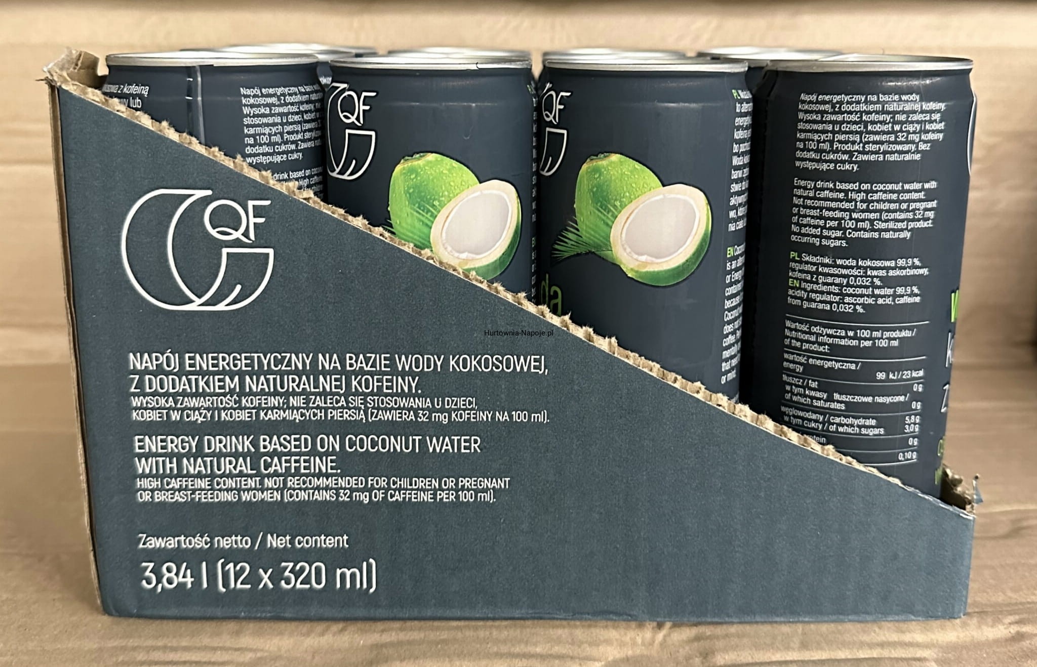 QF Woda kokosowa z kofeiną 320ml - karton