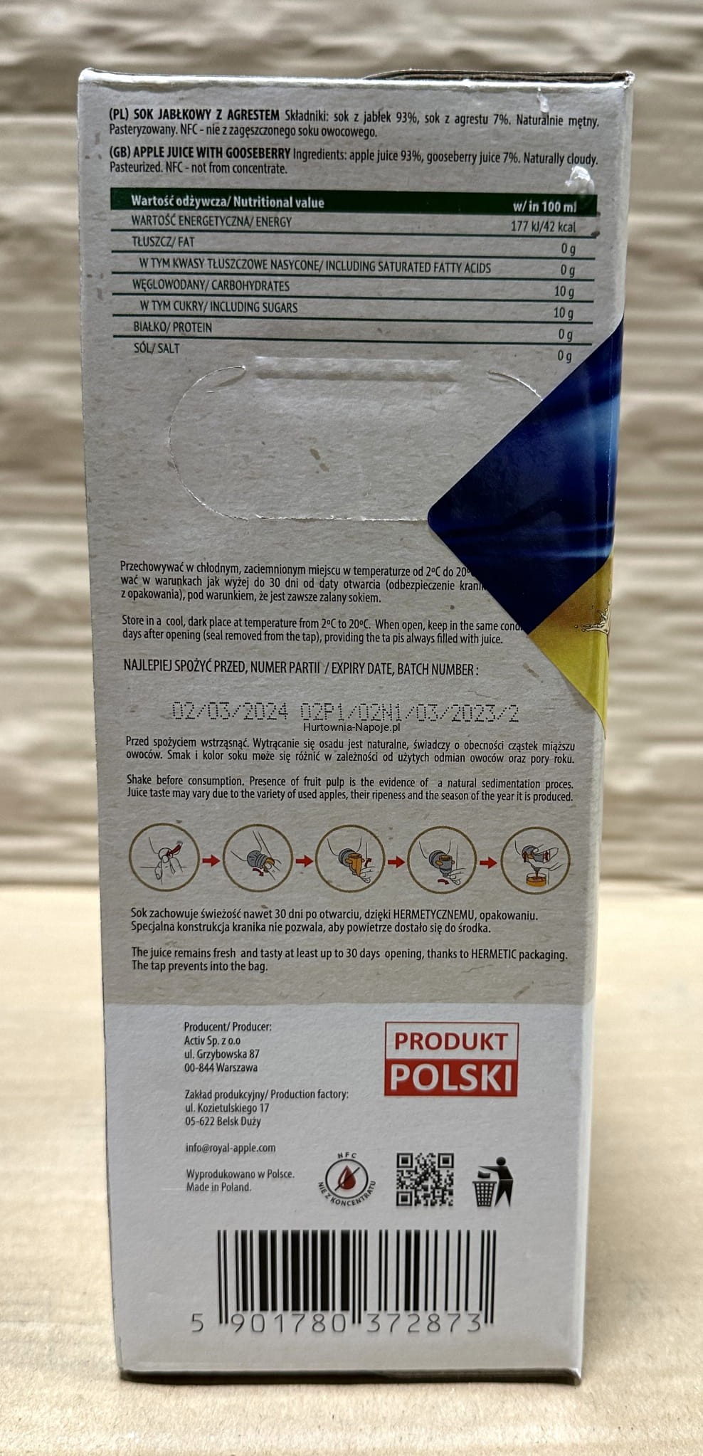 Royal Apple 3L Sok 100% jabłkowo-agrestowy