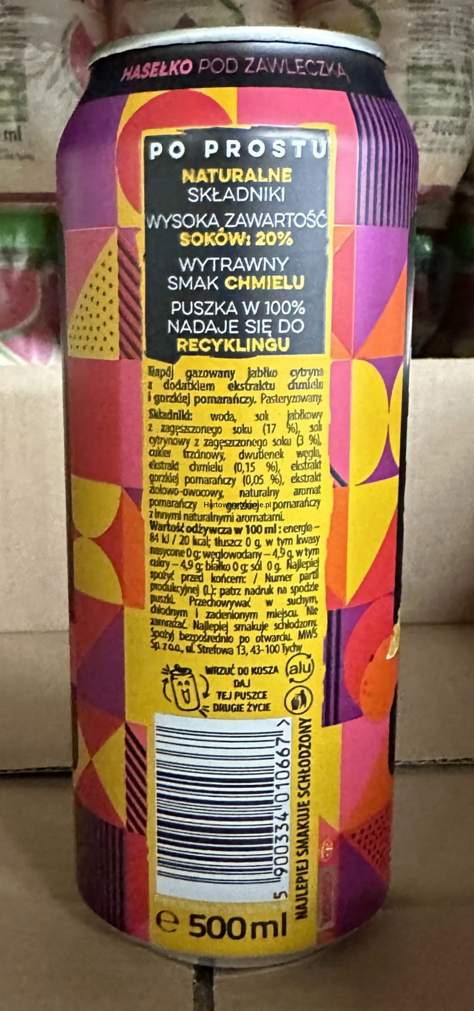Napój gazowany jabłko cytryna z dodatkiem ekstraktu chmielu i gorzkiej pomarańczy.
