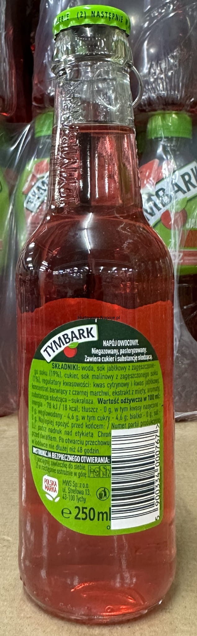 Tymbark napój malina-mięta 250ml (butelka szklana)