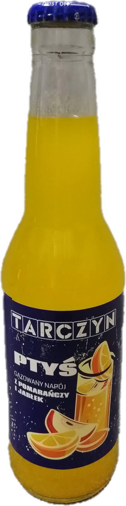 Ptyś to napój gazowany, który produkowany był przez firmę „Tarczyn” w miejscowości Tarczyn. Przedsiębiorstwo to powstało pod koniec lat 60 ubiegłego stulecia. Region, z którego wywodzi się napój Ptyś ma bogatą tradycję sadowniczą, uprawiane tam jabłka czy chmiel są popularne w całym kraju. Firma Tarczyn poczyniła wiele inwestycji w nowoczesne urządzenia do produkcji, co zapewniło im silną pozycję na rynku polskim, oraz na rynkach zagranicznych. Jednym z najbardziej rozpoznawalnych produktów marki Tarczyn był właśnie napój Ptyś, który można było kupić w całym kraju w latach 80. XX wieku.